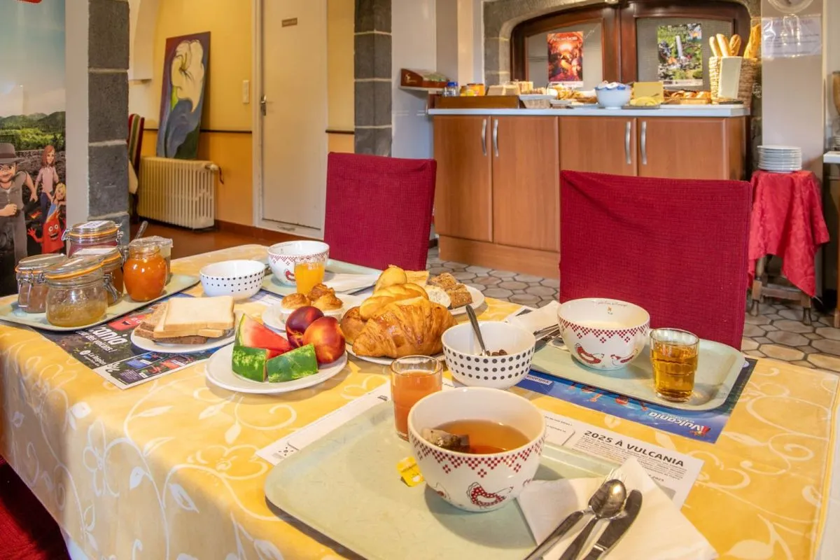 Commencez votre matinée à l’Hôtel Arum, situé au cœur de l’Auvergne, avec un petit-déjeuner généreux : café, thé, lait, viennoiseries fraîches, pain, produits laitiers, jus de fruits, confitures maison et spécialités fromagères locales.